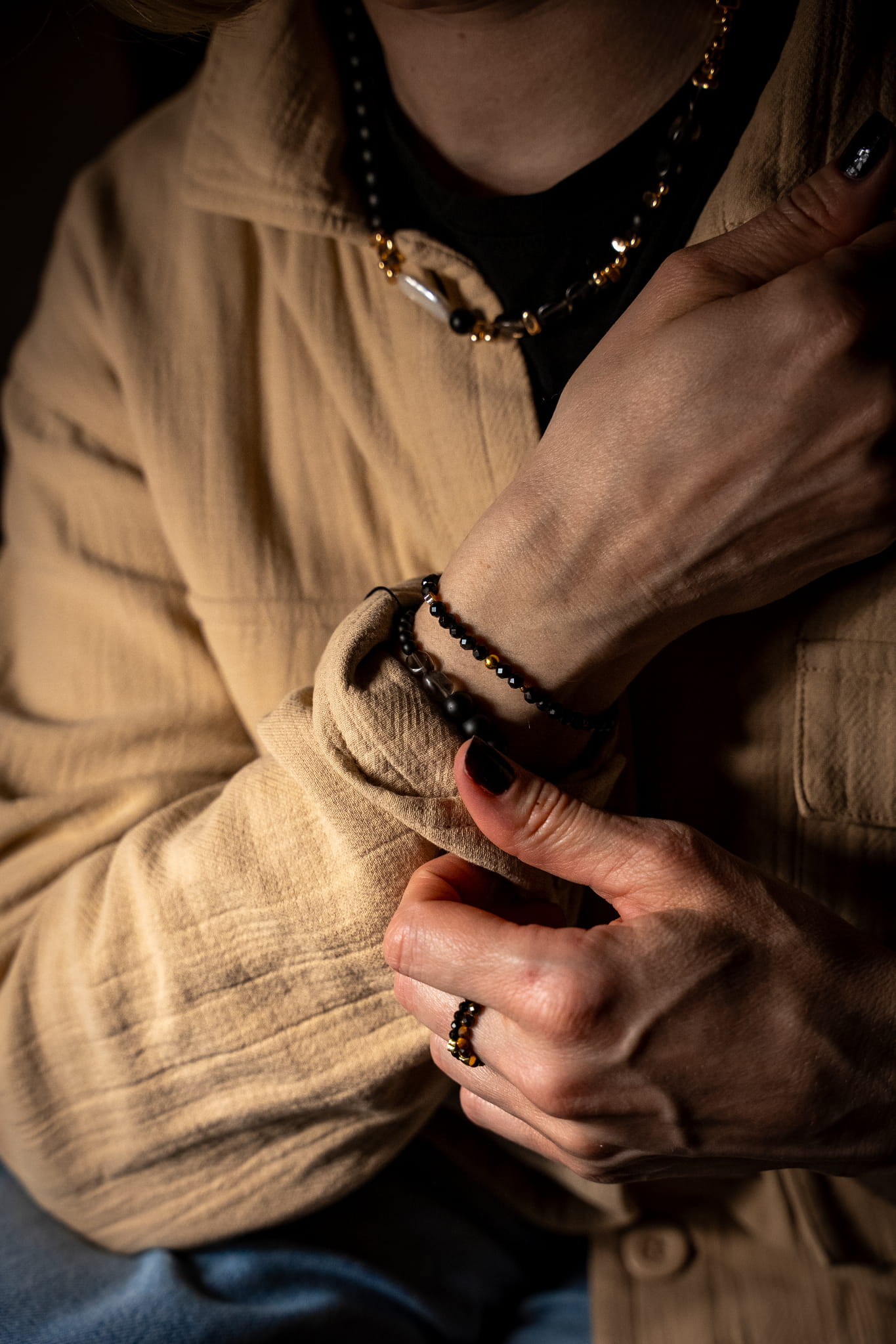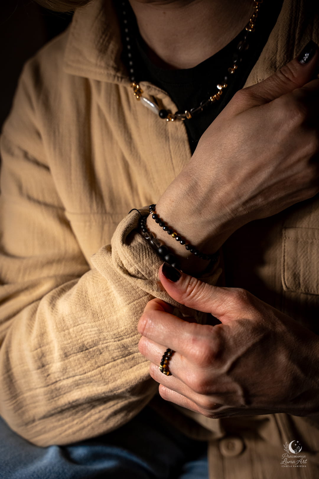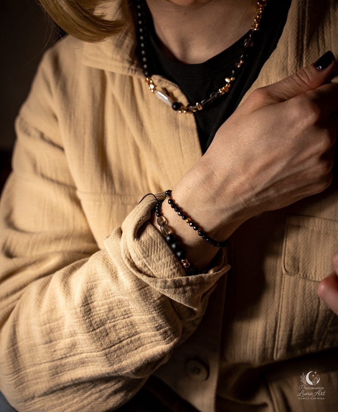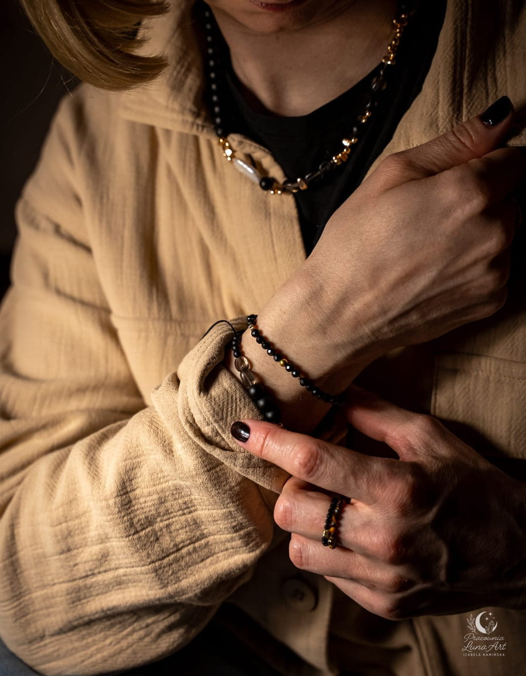 Poznaj biżuterię, która definiuje nowoczesną elegancję. Połączenie głębokiej, matowej czerni, dymnych transparentności i świetlistej perły tworzy projekt, obok którego nie da się przejść obojętnie. To pojedynczy egzemplarz unikatowy – zaprojektowany i wykonany tylko raz, by podkreślić Twoją niepowtarzalność.