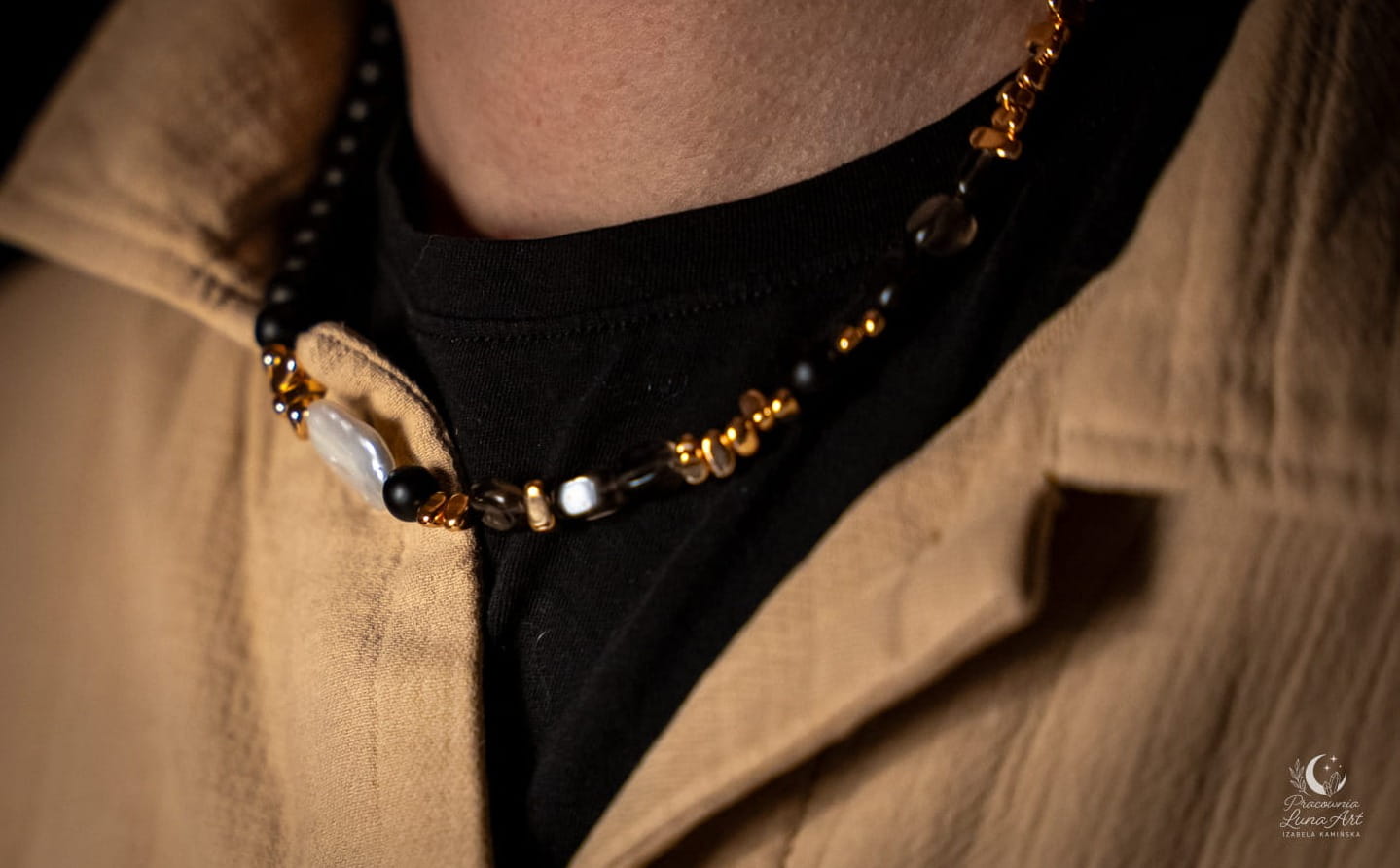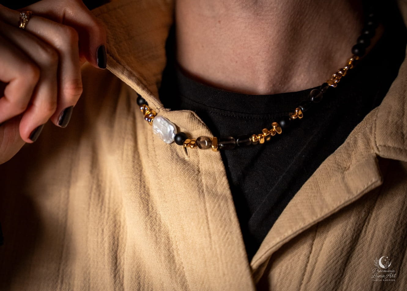 Oto opis kolejnego wyjątkowego naszyjnika, który łączy w sobie surowość ziemi z luksusowym blaskiem. Ta kompozycja to prawdziwy klasyk – idealny dla kobiety, która chce czuć się pewnie i elegancko w każdej sytuacji.
