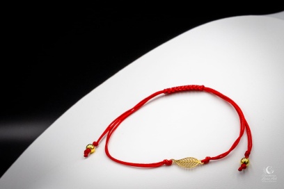 Bransoletka Botaniczna "Złoty Liść" - Czerwonym Sznurek & Srebro Pozłacane