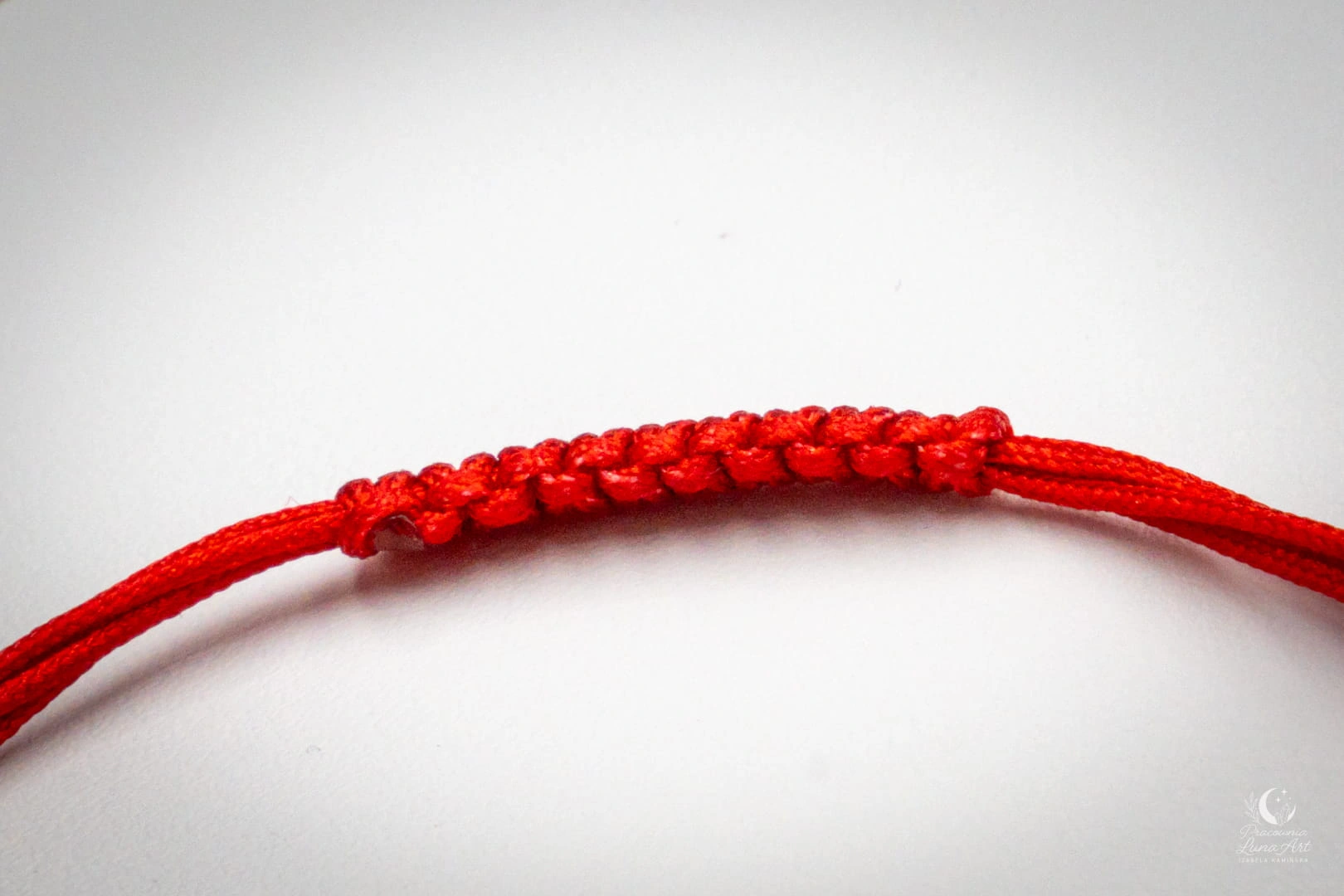 Kolorystyka: Sznurek w kolorze szlachetnej, czerwieni przywodzi ochronę i szczęście, stanowi idealne tło dla złotych akcentów.