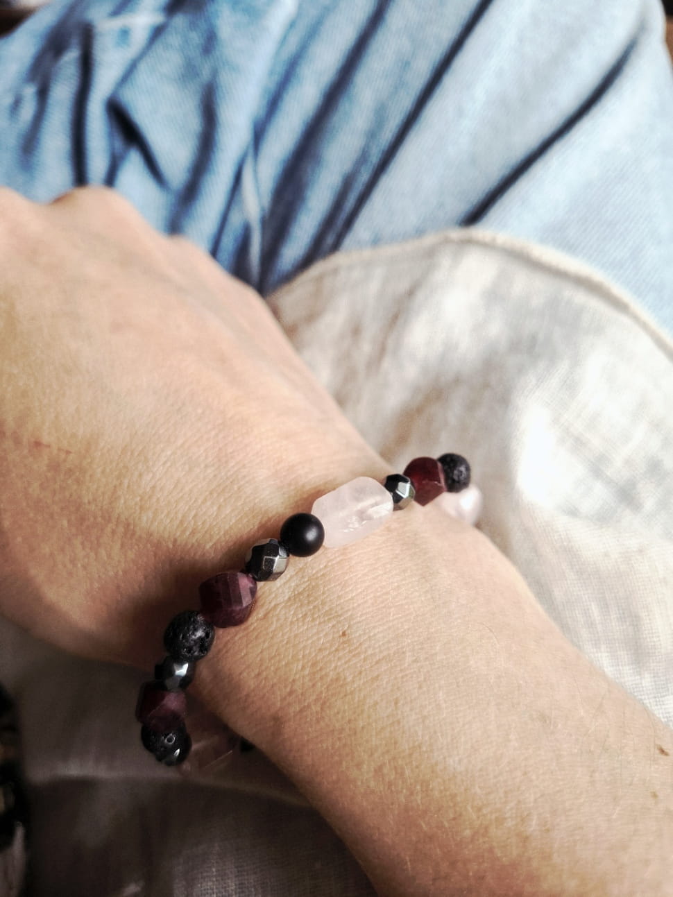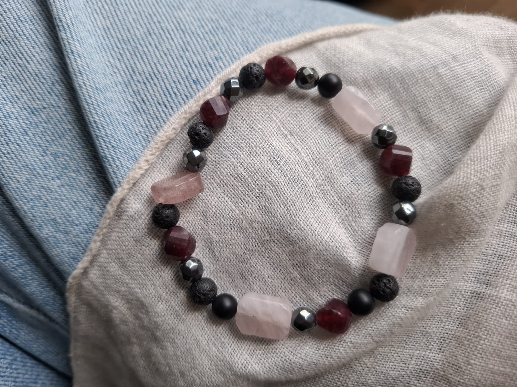Mała rada od Izabeli z Pracowni Luna Art: Ponieważ lawa wulkaniczna jest porowata, można na nią nanieść kroplę ulubionego olejku eterycznego - kamień będzie trzymał zapach przez cały dzień, zamieniając bransoletkę w osobisty dyfuzor zapachowy :)