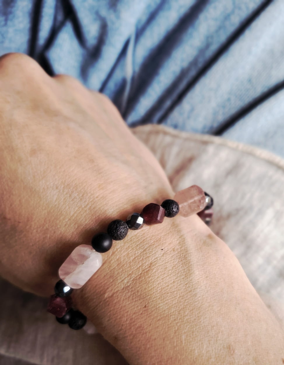 Poczuj pierwotną siłę natury na swoim nadgarstku. Ta wyjątkowa bransoletka od Pracowni Luna Art to połączenie ognia i ziemi. Skomponowana z kamieni o nieregularnych kształtach i różnych teksturach - od porowatej lawy po gładki, lśniący kwarc - stanowi potężny talizman dla osób, które chcą brać życie w swoje ręce.