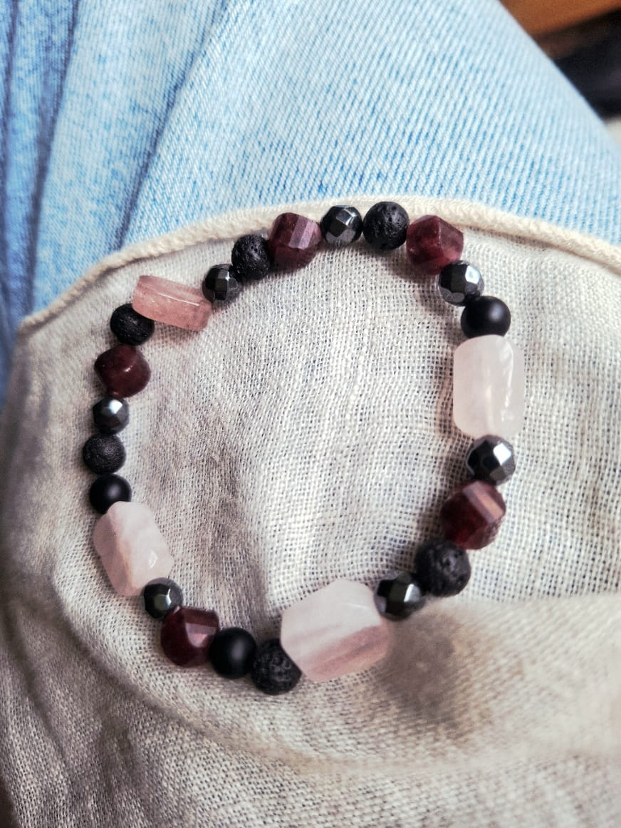 Bransoletka Witalności i Odwagi - Agat, Granat, Hematyt, Lawa Wulkaniczna, Kwarc