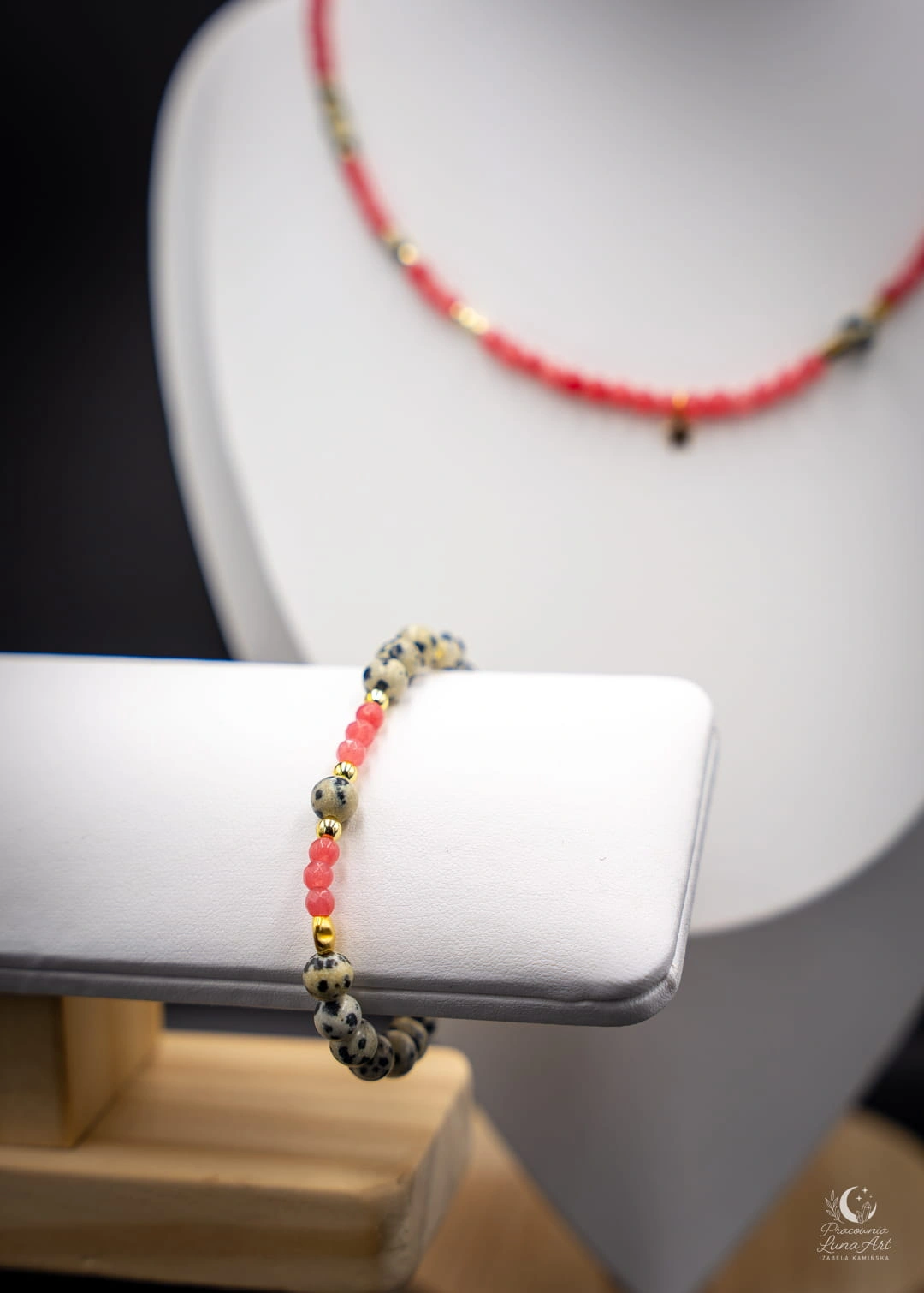 Zestaw naszyjnik + bransoletka – Jadeit, Jaspis dalmatyński, Hematyt